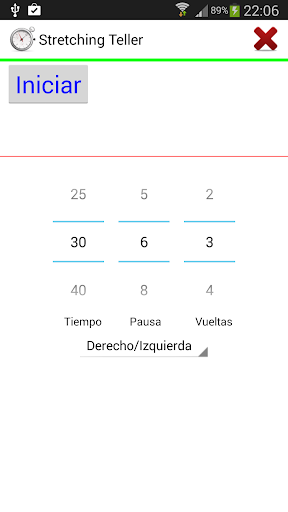 - Seleccionar el tiempo de estiramiento (en segundos)
