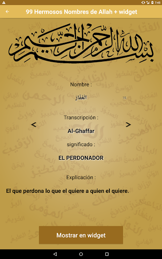 Aprender gracias a esta aplicación uno de los 99 hermosos nombres de Allah todos los días.
