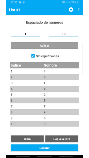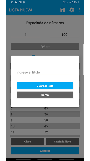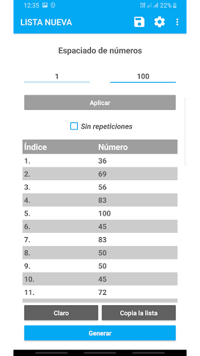Todos los números aleatorios generados se agregarán a la lista. Los números aleatorios en la lista serán numerados y almacenados en su teléfono inteligente.