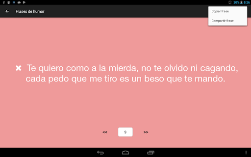 En esta aplicación encontrarás frases picarescas, divertidas, alegres para levantar el ánimo, para relajarnos en momentos de tensión o de tristeza.