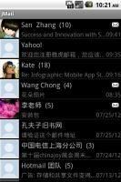 A mail client that support conversation view. just like SMS client. * Mails from(to) same address will be moved into one conversation; * Display contact photo; Mail features: * Multiple accounts, auto config mail server. * Smartly adjust frequency of checking new mails. Save your battery. * New mail notification; * Attachments supported; * POP3 IMAP SMTP Supported; Keywords: threaded mail