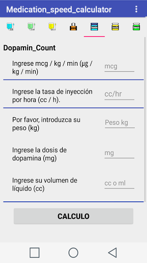 4. Cálculos de dopamina basados en mcg (mcg / kg / min) y cálculos basados en cc / hr disponibles (vea cómo usar)