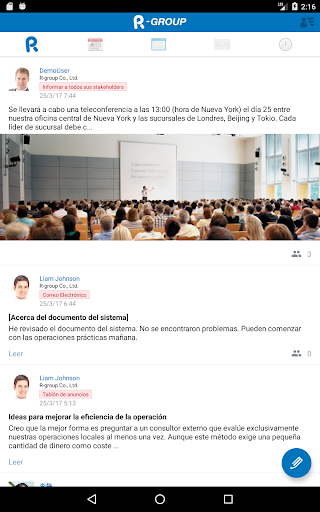 Línea de Tiempo, Programa, Tablón de anuncios, Correo Electrónico, Tarjetas para Fichar, Gestión de Stakeholder, Calendario de Turnos, Intercambio de Archivos, Gestión de Tarjetas de Visita, Función del Administrador, Llamada gratuita, Chat