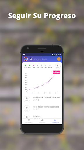 • Puedes rastrear tu vocabulario actual, tu dominio y tu valioso vocabulario en cualquier momento en tus estadísticas.