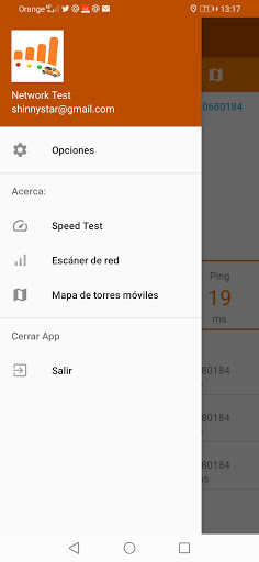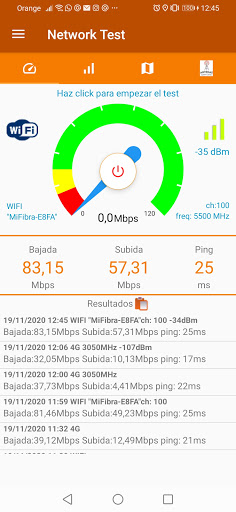 Le permite verificar la velocidad de bajada, subida (Mbps) y ping.