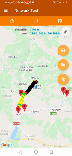 A partir de fuentes públicas de información, descubre la ubicación de las estaciones móviles y representa el resultado en un mapa de cobertura. La aplicación también le permite guardar los resultados de las ubicaciones y la cobertura en archivos de texto (.csv), y luego representarlos en un mapa como QGIS o el mapa de Google Maps incluido.