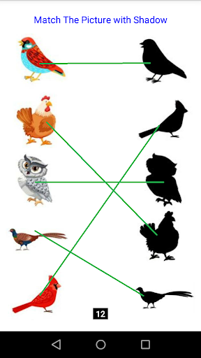 Shadow Puzzle is preschool learning game teach kids to recognize shapes and to concentrate. You need to draw line between images and shadow images.