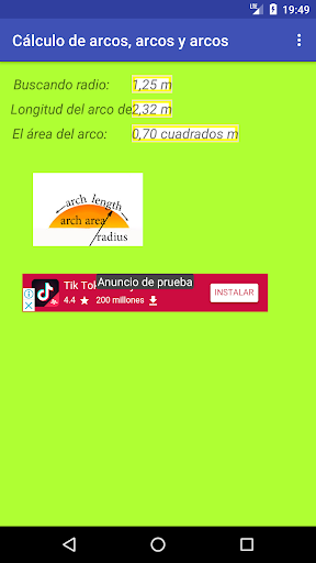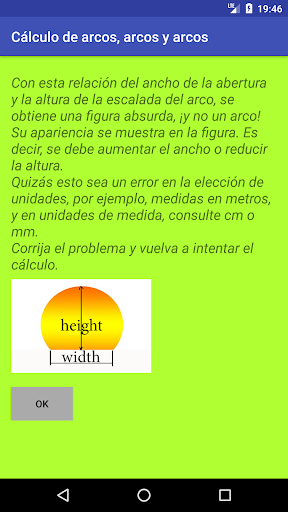 Además, la aplicación te permite calcular los radios para cualquier arco, arcada y superficie esférica, lo cual es extremadamente necesario en diferentes áreas de actividad. En este caso, como el ancho, debe especificar la distancia entre los extremos del arco, es decir, la longitud de la cuerda del arco. Y como la altura, la distancia más pequeña desde el medio del acorde al arco.