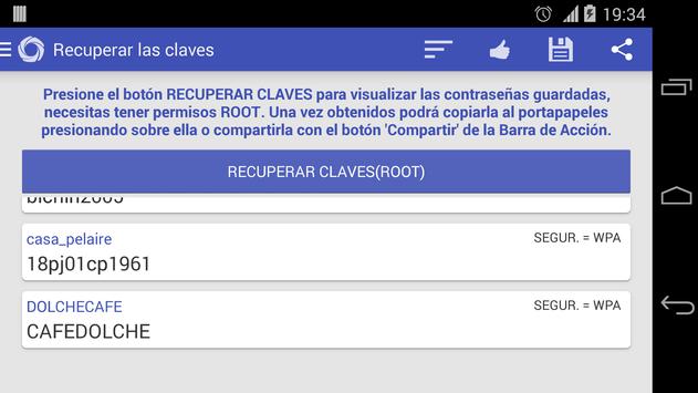 - Realizar Backups de las redes WiFi almacenadas en el móvil: podrás copiar la lista en un archivo en la tarjeta de memoria y restaurarla cuando quieras con un solo clic! Se trata de una gran opción para cuando necesitas formatear tu dispositivo, restaurarlo de fábrica, cambiar de ROM, etc. Podrás guardar una copia de seguridad de tus redes WiFi y restaurarla una vez terminado el proceso. Para este proceso es necesario ser ROOT.