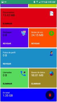 Elimina todos los archivos basura de tu Whatsapp, como fotos, imágenes, memes, audio mp3, notas de voz, grabaciones, videos, documentos pdf, docx, etc, fondos de pantalla, fotos de perfil, registros de llamadas grabadas, base de datos de copias de seguridad,