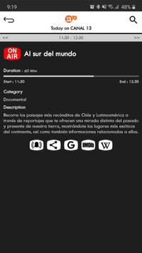 Listado de guías de TV y programas de programas de TV de más de cien canales de TV chilenos, españoles, latinos y otros canales internacionales que transmiten en Chile, incluidos TVN, Canal 13, Rocco TV, Osorno, Mega, Telefónica, Telesur, Teletrak, ARTV, CDF y canales de Chilivision