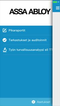 Tämä on ASSA ABLOY Suomi sovelluksen käyttää raportoidessaan terveyteen, turvallisuuteen, ympäristöön ja laatuun. Tarvitset kirjautuminen käyttää ohjelmaa. Ota yhteyttä johtaja saada tähän.