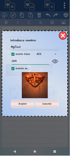 - Creación de Archivos Encriptados, donde puedes escribir un texto, adjuntar fotos, audios, archivos... donde finalmente estará todo empaquetado y encriptado en un solo archivo encriptado y protegido con la clave y el algoritmo de cifrado que usted decida poner.