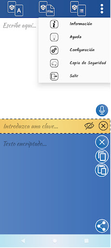 - Encriptación/Desencriptación rápida de Texto, para enviar por WhatsApp, Telegram, Line, email...