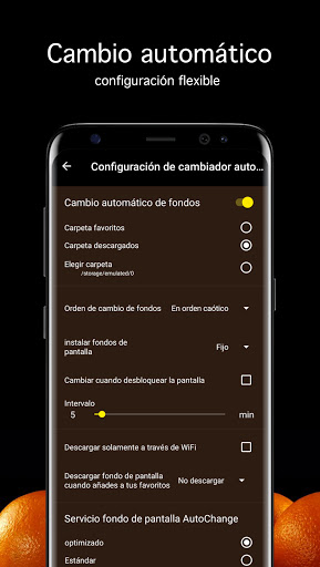 Una vez definida la imágen, se puede descargar, añadir o directamente instalar como fondo de pantalla en su teléfono o tableta. Todas las fotos naranja también se establecen como el papel pintado en la pantalla de bloqueo.