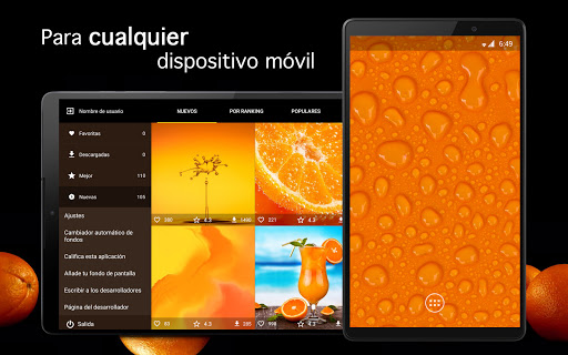 Un sistema de búsqueda inteligente le ayudará a encontrar exactamente HD fondos naranja que desea establecer como el escritorio. Una característica única de nuestra aplicación es la búsqueda de los fotos en español. E innovadora tecnología de búsqueda en la paleta de colores hace que sea más fácil buscar una imágen en color deseado.