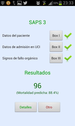 - Calcula SAPS 3 Score y mortalidad esperable.