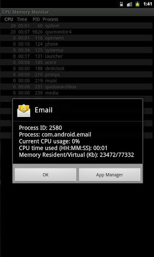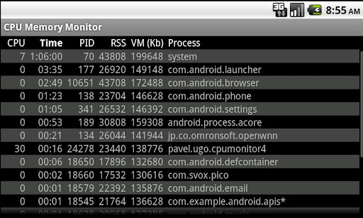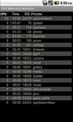 Can filter processes by name. Scroll can be enabled. See the app settings.