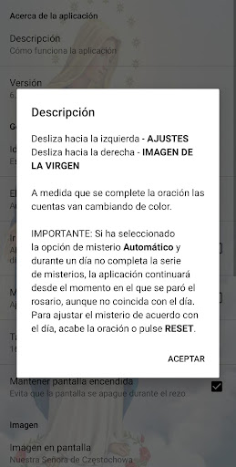 Al rezar puede elegir la imagen de la Virgen o añadir otra ilustración.