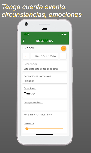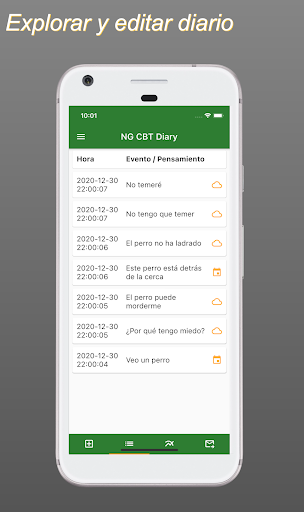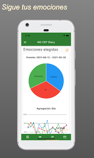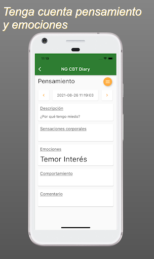 Si estás en terapia cognitivo conductual, esta aplicación definitivamente es para ti. Diario TCC le ayuda en su terapia CBT todos los días, día a día. Con esta aplicación puede registrar eventos, sus pensamientos, emociones y comportamientos, analizarlos en gráficos y enviar informes a su terapeuta. Debido a que el Diario TCC está en su móvil, tiene su diario siempre con usted. Nunca te olvidarás de tomar. Puede tomar notas en cualquier lugar y en cualquier momento.