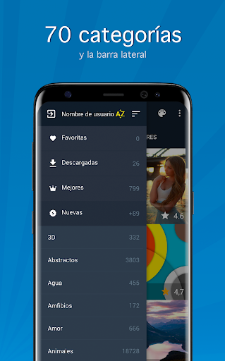 Barra lateral conveniente contiene 65 secciones que están presentes solamente como imágenes HD de calidad. Una vez definida la imágen, se puede descargar, añadir o directamente instalar como fondo de pantalla en su teléfono o tableta. Todas las fotos también se establecen como el papel pintado en la pantalla de bloqueo.