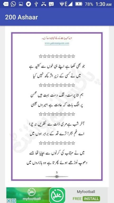 Following is the introduction of a wonderful App. 20,000+ users downloaded 200 Ashaar اردو شاعری latest version on 9Apps for free every week! Therefore, people are willing to accept this latest version. This hot app was released on 2017-08-25. You can quickly get it from 9Apps!