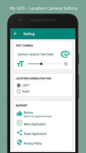 My GPS: la cámara de ubicación le proporciona la mejor ubicación disponible, según los datos de la ubicación. La aplicación para almacenar la ubicación GPS (latitud y longitud), donde sea que esté y también agregue la hora actual y la ubicación al capturar la cámara. De cualquier lugar dentro de la aplicación, puede compartir fácilmente sus datos actuales de ubicación a través de su aplicación de mensajería preferida. Sus amigos reciben su ubicación GPS y un enlace a los mapas de Google con su posición. Puede tomar una foto con el tiempo, la dirección y la ubicación de