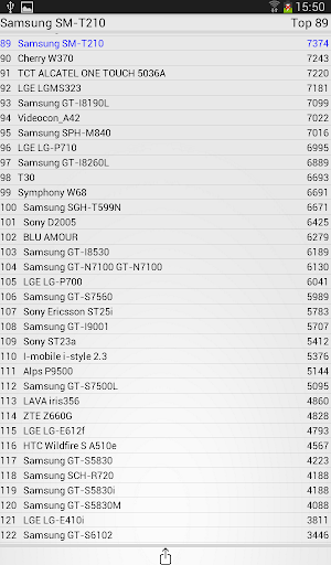 Por otro parte está la puntuación que aparece en la pantalla del ranking online. Esta puntuación se representa con un numero en una escala que no tiene un limite superior, y el método de puntuación nunca cambia con el tiempo por lo que es ideal para comparar dispositivos.