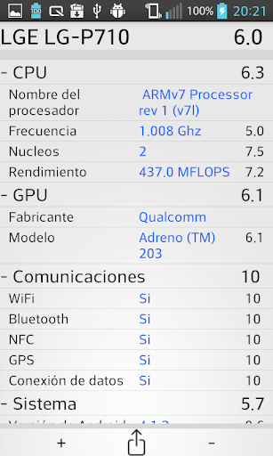 Con esta app podrás obtener una puntuación del hardware de tu dispositivo, para ello se categorizan todos los componentes por diferentes secciones para obtener puntuaciones por cada categoría y también una puntuación total.