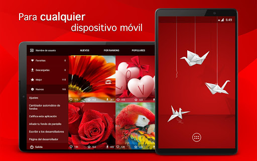 Un sistema de búsqueda inteligente le ayudará a encontrar exactamente HD fondos rojos que desea establecer como el escritorio. Una característica única de nuestra aplicación es la búsqueda de los fotos en español. E innovadora tecnología de búsqueda en la paleta de colores hace que sea más fácil buscar una imágen en color deseado.