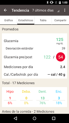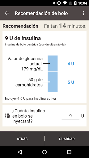 • Opciones avanzadas de registro que incluyen: comidas (tamaño, carbohidratos o calorías), imágenes de comida, insulina, ejercicio, medicación, presión arterial, peso, evento de salud y notas.