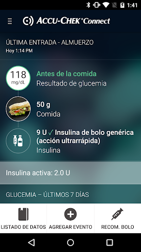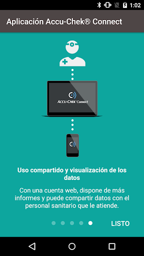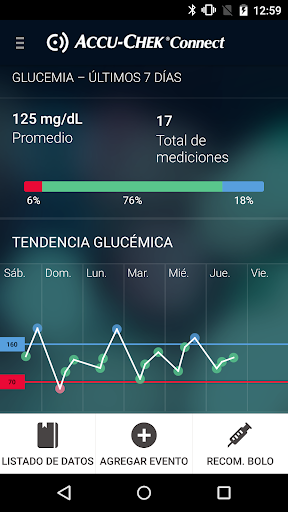 La aplicación Accu-Chek Connect es una herramienta de ayuda en la gestión de la diabetes. Permite la descarga electrónica de datos de los medidores, la introducción manual de datos, el almacenamiento, visualización, transferencia y autogestión de datos de glucemia, además de incluir otros indicadores de salud, los cuales pueden mostrarse en formato de informe y gráfico.