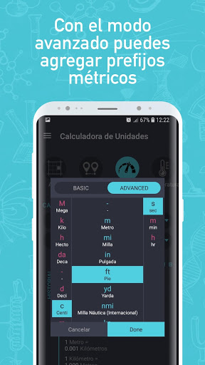 ** Además incluimos un modo avanzado que da acceso a prefijos Científicos como Exa, Peta, Tera, Giga, Mega, Kilo, Deci, Centi, Mili, Micro, Nano, Pico, etc. Permitiéndote realizar cálculos más científicos y especializados **