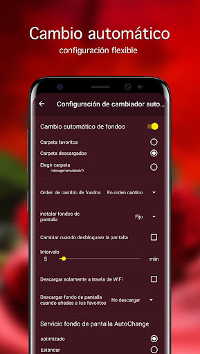 Una vez definida la imágen, se puede descargar, añadir o directamente instalar como fondo de pantalla en su teléfono o tableta. Todas las fotos con rosa también se establecen como el papel pintado en la pantalla de bloqueo.