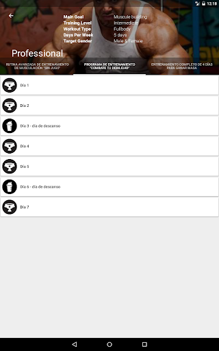 ¿Cansado de los entrenadores personales inútiles y poco carismáticos? ¡Deja que GymApp sea tu entrenador personal! Con un buen programa de entrenamiento y el tiempo necesario podrás desarrollar toda clase de musculos. Rutinas perfectas para el culturismo y el fitness (fisicoculturismo rutinas).