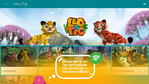 • Cargar cualquier dibujo animado en su dispositivo y verlo sin conexión a Internet. Disponible solo con suscripción paga.