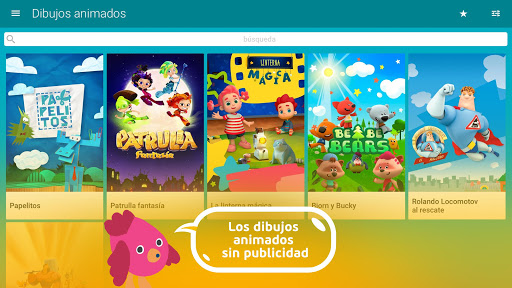Dibujos animados disponibles en la aplicación: «Be-be-bears», «Leo&Tig», «Linterna Magica», «Papelitos», «Patrulla Fantasia», «Rolando Locomotov», «Maderitas», «FAST».
