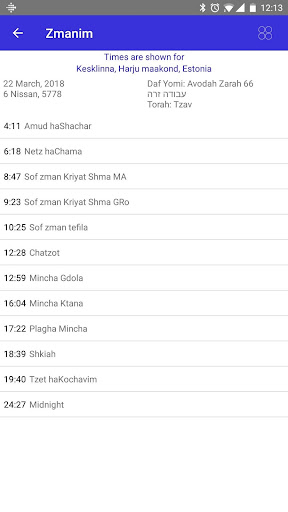 De vez en cuando (Zmanim) para este día.Más en la página principal puede con un solo toque a la sección de hoy, Tehilim o Humash.