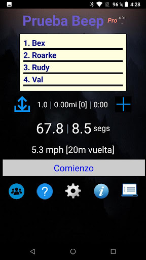 Una aplicación sofisticada para grupos de prueba y para pruebas individuales avanzadas. Sigue estrictamente el protocolo de Luc Leger (1984). Tómese un tiempo para examinarlo (video en https://youtu.be/AEgrekcjcUI). Haz algunas pruebas antes de ir a vivir con él.
