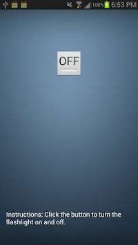 This is a very simple flashlight app. It provides you light at your time of need. Just one button to turn the flashlight on then back off. REMEMBER, IF YOUR PHONE DOES NOT HAVE A CAMERA, THIS APP WILL NOT WORK!