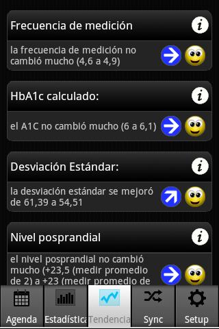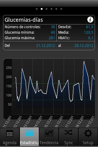 Con SiDiary es muy sencillo usar una libreta de autocontrol para tu diabetes en tu dispositivo Android. De una forma rápida puedes hacer un seguimiento de todos los datos relevantes para tu tratamiento, como la glucosa en sangre, los carbohidratos y medicamentos como insulina, mediante una plantilla sencilla para que sea visible en tu dispositivo Android. Tus datos se pueden analizar con la función estadística o con nuestros análisis de tendencias.