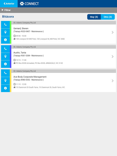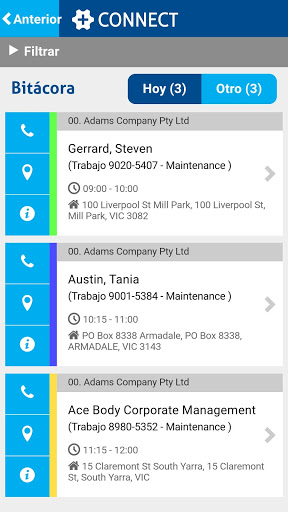 simPRO Connect es la extensión en el campo de trabajo de simPRO Service y simPRO Enterprise. Personal en el campo solicita y actualiza tiempos de trabajo, materiales, detalles y pueden hasta tomar pagos en el sitio en tiempo real, habilitando así una comunicación ininterrumpida con la oficina.