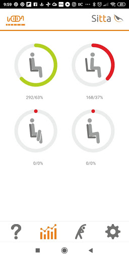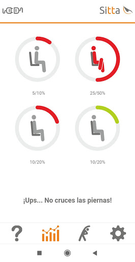 Esta aplicación permite conectarte con una silla con sistema sensor y te mostrará como te sientas habitualmente. En función de tus posturas características te aconsejará una serie de ejercicios para reducir en lo posible las consecuencias de estar mucho tiempo sentado.