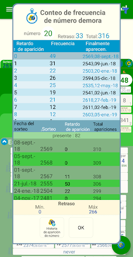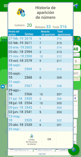la última vez que apareció un número, el total de veces que apareció un número y muchos más