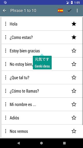 - Lista cuidadosamente traducida de frases esenciales.
