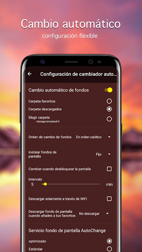 Una vez definida la imágen, se puede descargar, añadir o directamente instalar como fondo de pantalla en su teléfono o tableta. Todas las fotos con amanecer también se establecen como el papel pintado en la pantalla de bloqueo.