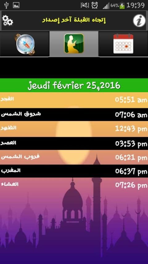 La descripción de أوقات الصلاة و إتجاه القبلة