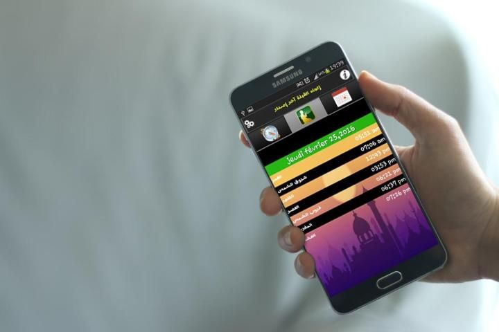 Using a positioning system based application displays prayer times (dawn, sunrise, noon, Asr, Maghrib, Dinner)