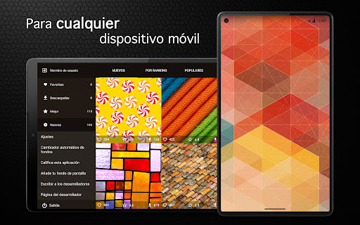 Un sistema de búsqueda inteligente le ayudará a encontrar exactamente HD fondos con texturas que desea establecer como el escritorio. Una característica única de nuestra aplicación es la búsqueda de los fotos en español. E innovadora tecnología de búsqueda en la paleta de colores hace que sea más fácil buscar una imágen en color deseado.