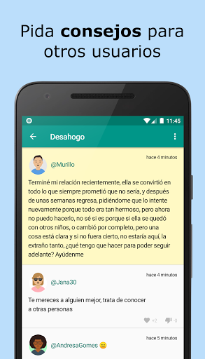 Conoce nuevos amigos virtuales e interactúa de forma anónima, además de desahogarte y pedir consejo, podrás hacer nuevos amigos y hablar de todos tus problemas y alegrías.